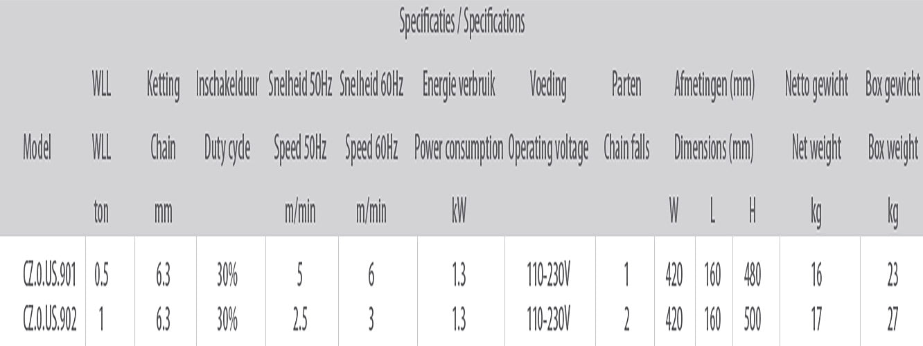 1T X 9M ELECTRIC HOIST 110V SPEED 2.5/MIN FALL 2 MODEL US920