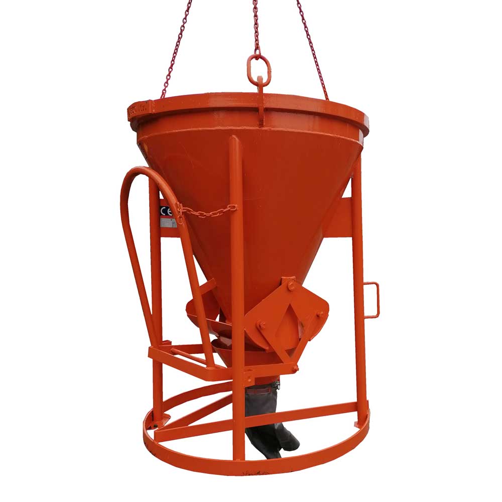 These concrete funnel skips are perfect for narrow pours to columns and formwork via a 2m flexible pipe., Lever operated, and fork boxes , A tilting receptacle prevents cement grout from dripping.