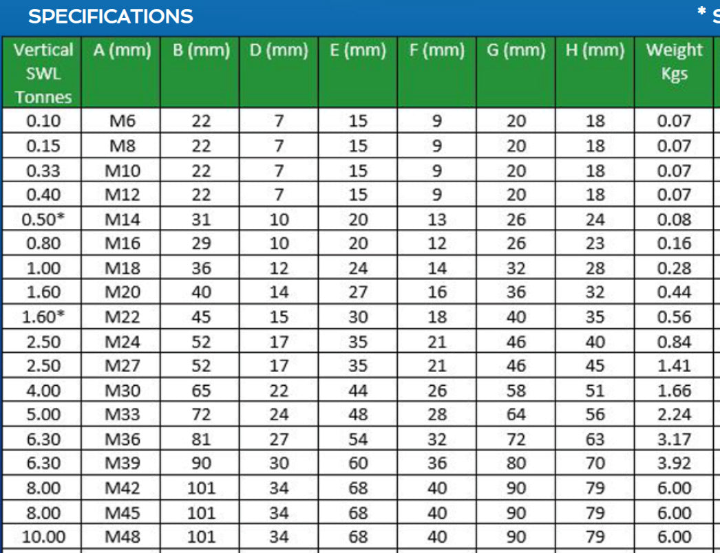 Safety Note: Eyebolts under M12 are not recommended for lifting.