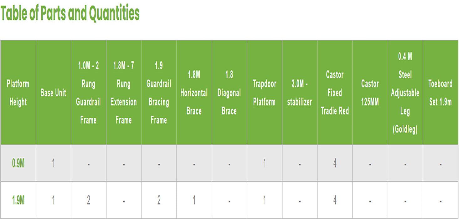 This scaffold tower can be assembled in a matter of minutes and fits into a van when disassembled as the longest part is only 1.9m. [ IN STOCK]