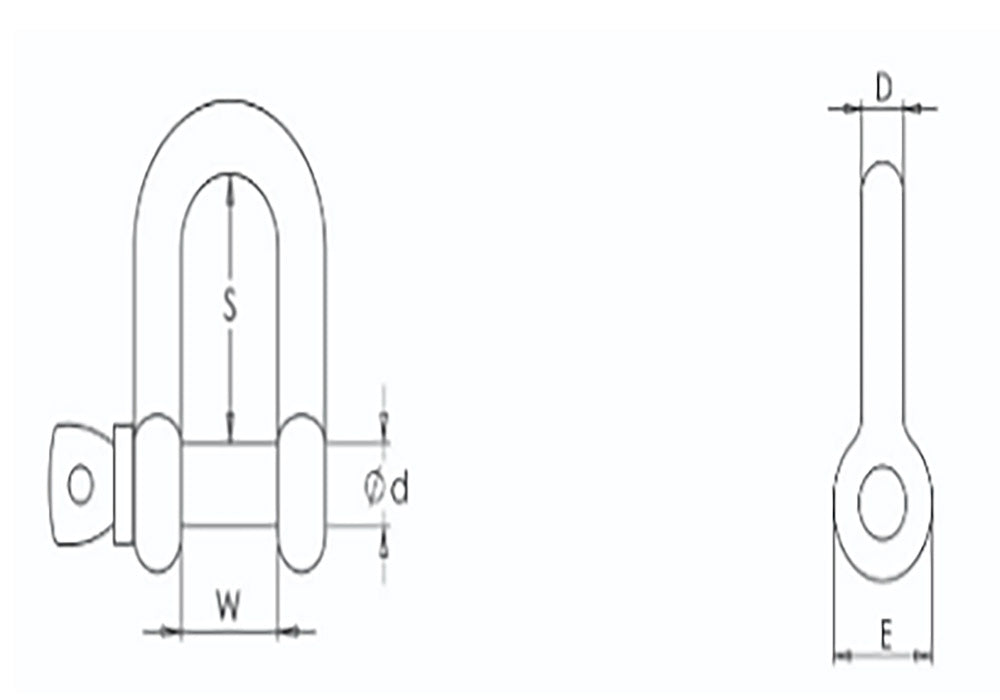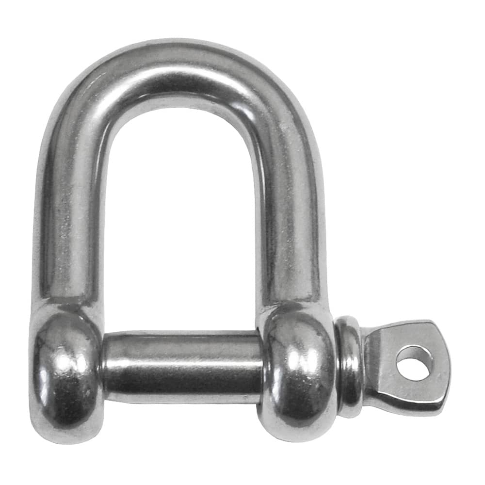 Stainless steel Dee shackles with screw pin closing. Suitable for a wide variety of applications such as tensioning wires or securing loads. Not suitable for lifting applications.